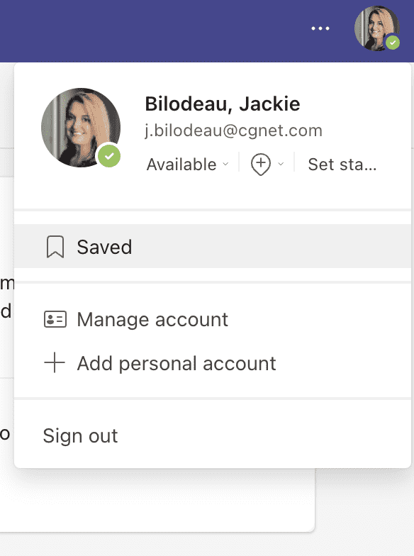 There are some chats or posts that you want to flag as important and be able to get to quickly in the future. Here’s how you do that. Just click the ellipsis (…) on the right side of any chat message or post in a channel and select Save message. Pretty straightforward. But how do you then get to all those messages you’ve saved? Just go back up to the search bar at the top and type /saved. The list of all saved messages will appear in a left sidebar: