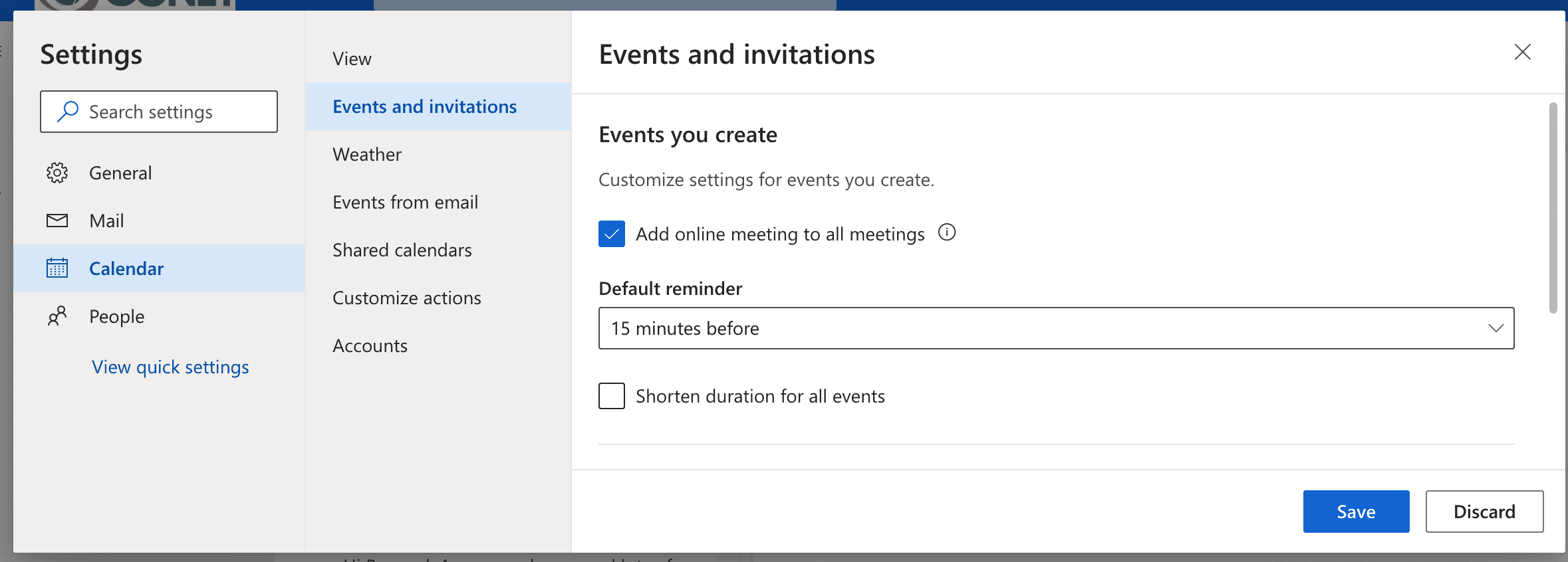 OWA Teams Meetings default